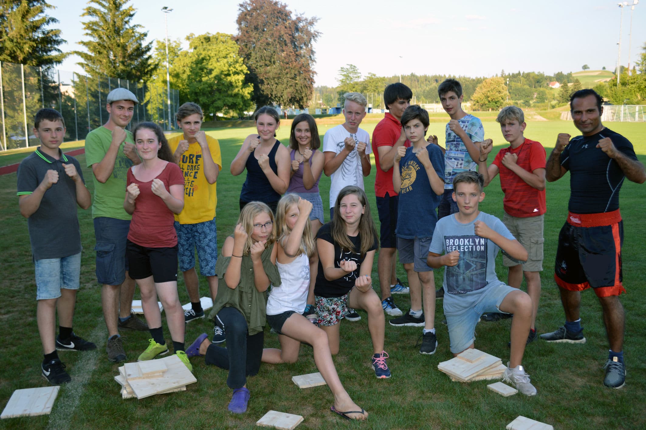 Sehr gelobt wurde Köchin Inge Thamerus, die einmal mehr für das leibliche Wohl der jungen Leute sorgte. Ein Volltreffer waren die Sportstunden mit Nurhak Yücel. Der ehemalige Europameister im Kickboxen war auf Vermittlung von Erwin Lang nach Huttwil gekommen, um die Jugendlichen aus den drei Ländern nach einem umfangreichen Aufwärmprogramm mit zahlreichen Dehnübungen in die Kunst der Selbstverteidigung einzuführen. Höhepunkt seines Programms war das Einüben von Karateschlägen. Er brachte es tatsächlich allen bei, Bretter mit bloßen Füßen bzw. Händen durchzuschlagen.