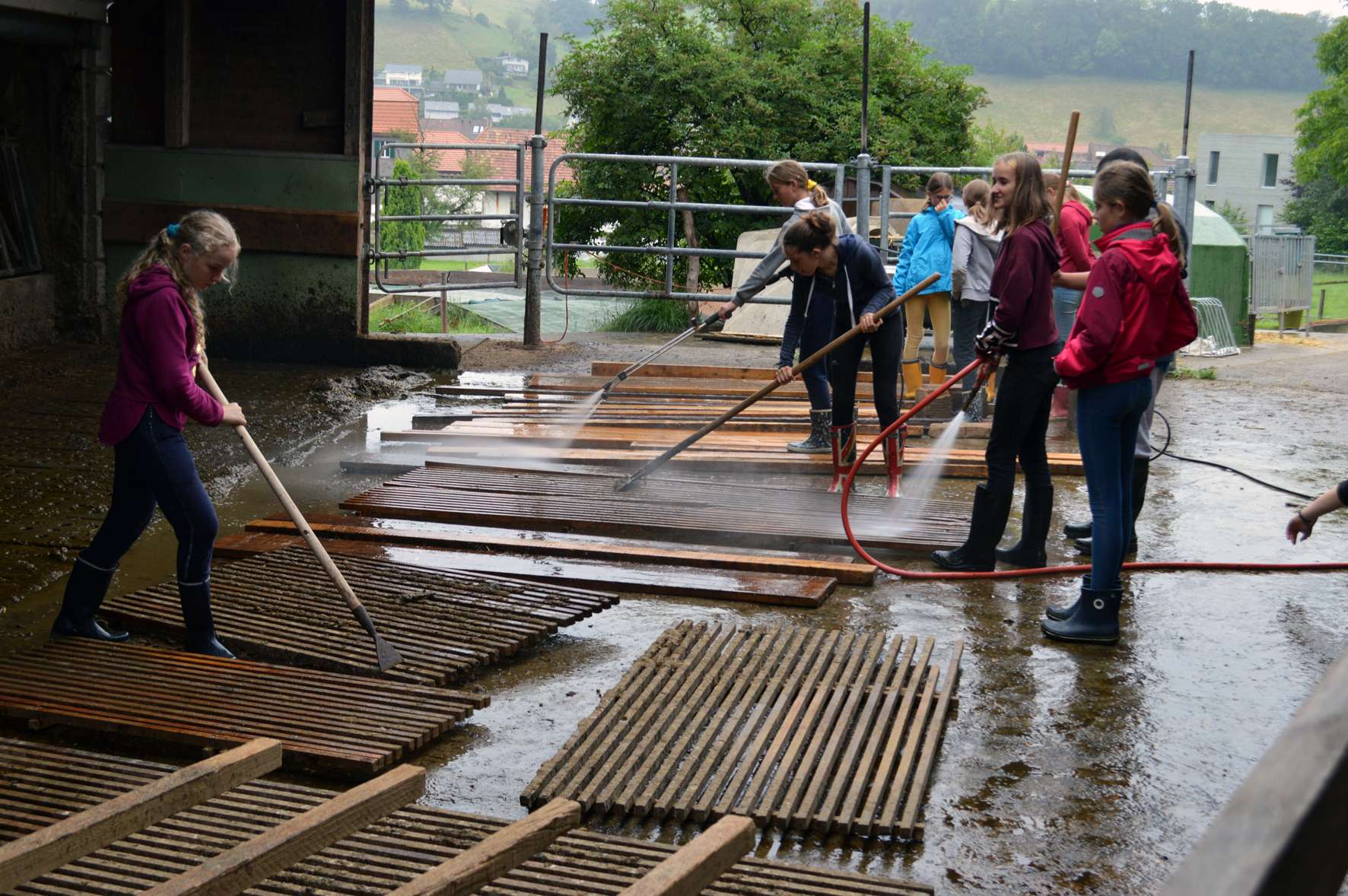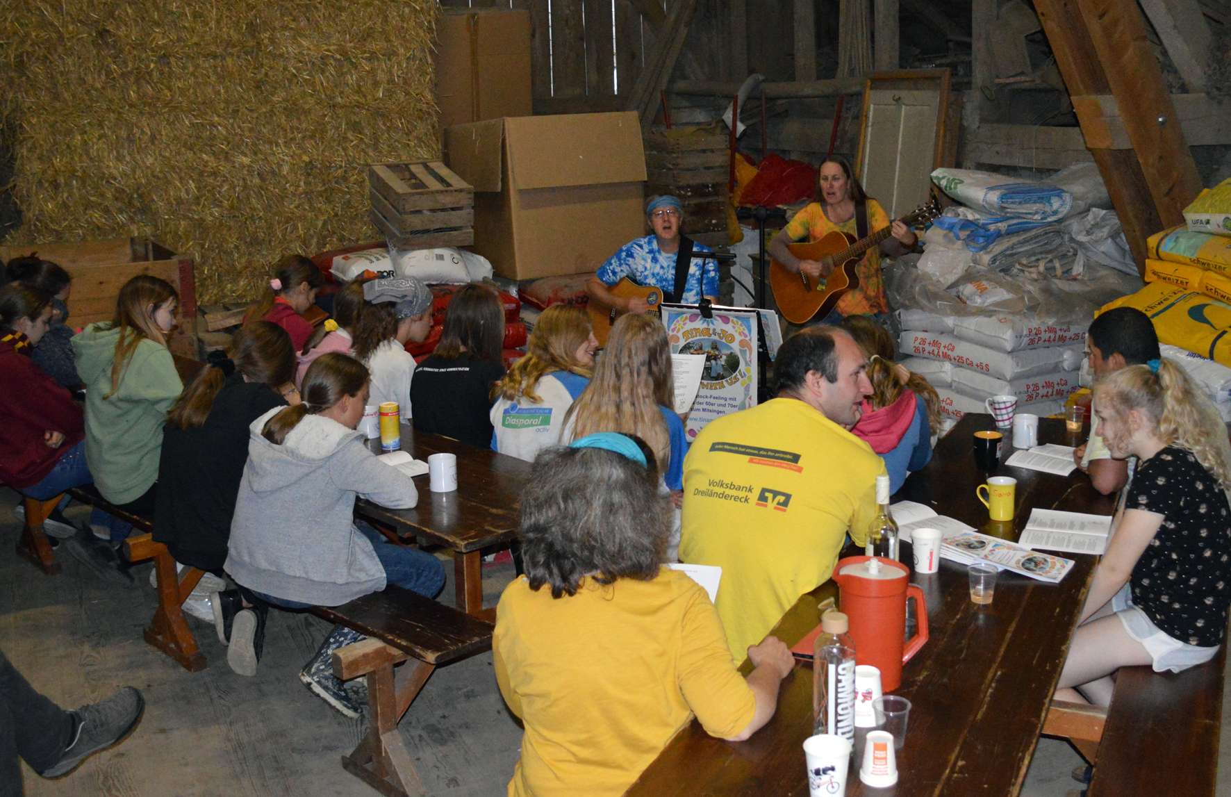 Beide Freizeiten mit Jugendlichen aus dem Landkreis Lörrach, aus dem Raum Basel und aus dem Elsass haben inzwischen Tradition: Ende Juli wurde das Sommercamp auf einem Bauernhof in Huttwil im Emmental durchgeführt. Sechs Tage lang wurde die Stallarbeit von den Jugendlichen übernommen. Morgens um 6 Uhr und abends um 17 Uhr waren das Melken von 29 Kühen sowie das Ausmisten des Stalles angesagt. Mit Freude waren alle auch bei Arbeiten auf dem Feld, im Wald und bei der Grundreinigung des Hühnerstalls dabei. Gleich am ersten Abend sorgte das Lörracher Duo Tina & Jo für einen ersten Höhepunkt im Freizeitprogramm: Gerne kamen die Kids vor der ersten Nacht im Strohlager der Aufforderung „Sing with us!“ nach. An den weiteren Tagen standen ein Freibadbesuch und diverse Spiele auf dem Unterhaltungsprogramm. Regen Zuspruch erfuhr immer wieder das Bogenschießen. Auch der von Leo-Mitglied Andreas Remdt angeleitete Selbstverteidigungskurs fand großen Anklang. In bester Erinnerung wird allen bleiben, dass sie hautnah bei der Geburt eines Kalbs dabei sein konnten. Für Begeisterung sorgte auch die Verpflegung, zu der die Landwirtsfamilie täglich selbstgebackene Kuchen beisteuerte. Nach der Stallarbeit am letzten Abend sorgte ein abschließendes Pizzaessen für Stärkung vor der Heimreise.