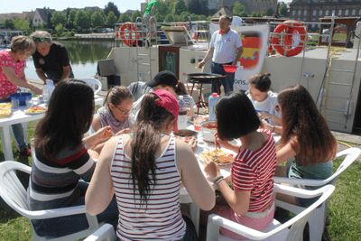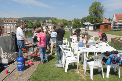 Zwei Mitglieder des Lions Clubs Weil am Rhein sowie ein Mann vom Lions Club Saint-Louis begleiteten die unternehmungslustigen jungen Leute. Das Team wuchs schnell zusammen. Die Begeisterung war vom Anfang bis zum Schluss riesengroß. Alles funktionierte bestens: Das Leben auf den Booten, das Mitanpacken in den zahlreichen Schleusen, interessante Spiele im Freien, ein Besuch des Freizeitbads Centre Nautique in Saverne, hundert Fahrten auf der Rodelbahn beim Schiffshebewerk von Arzviller. Absoluter Höhepunkt war für alle ein Abend mit dem von den Lions engagierten elsässischen Liedermacher Robert-Frank Jacobi. Der Sänger begeisterte im Bootshafen von Saverne Jung und Alt mit seinen tiefgründigen Liedern über die Bedeutung eines friedlichen Miteinanders.