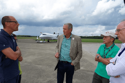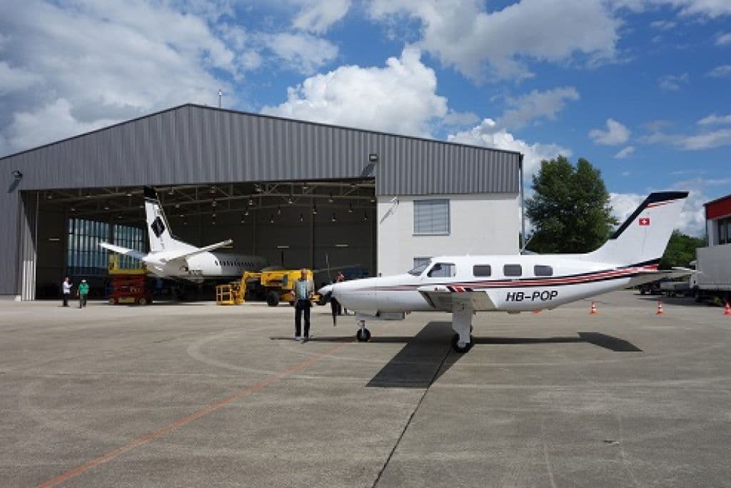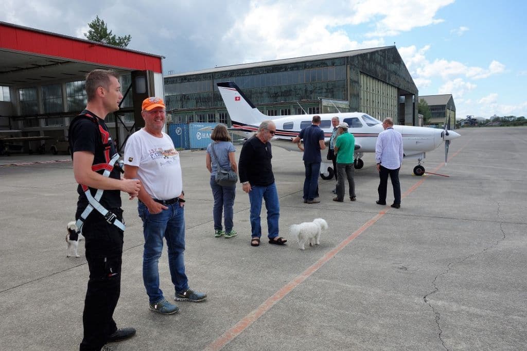 Am Anreisetag herrschte nicht überall bestes Flugwetter. Die Teilnehmenden trafen deshalb am Samstag je nach Streckenwetter per Flugzeug, oder mit dem Auto ein. Nach einer ersten Verpflegung im Fliegerhorst besichtigten wir den Unterhaltsbetrieb von Ewald Ritter. Einst Metzgermeister, sollte er den elterlichen Betrieb übernehmen. Aber es kam anders. Er wechselte das Fach, erarbeitete sich alle nur möglichen Lizenzen der Luftfahrt und leitet heute einen Flugzeugunterhaltsbetrieb auf dem Gewerbegelände des Flugplatzes Bremgarten. Wir staunten zudem nicht schlecht, als uns seine sympathische Partnerin professionelle Flug-Simulatoren in hinteren Teil des Hangars präsentierte: von einem älteren französischen Mirage- Trainer bis zum hydraulischen Lufthansa- Boeing Simulator.